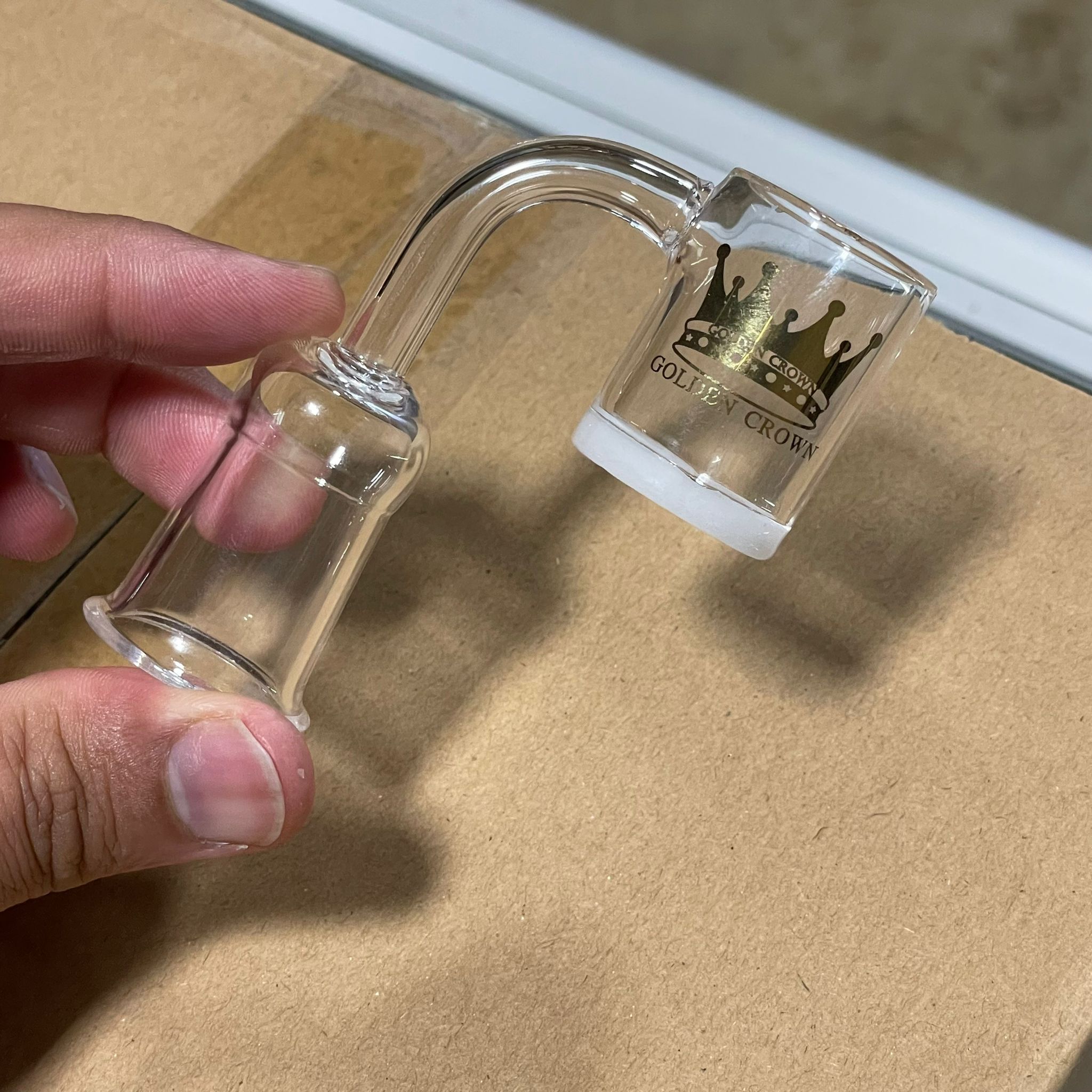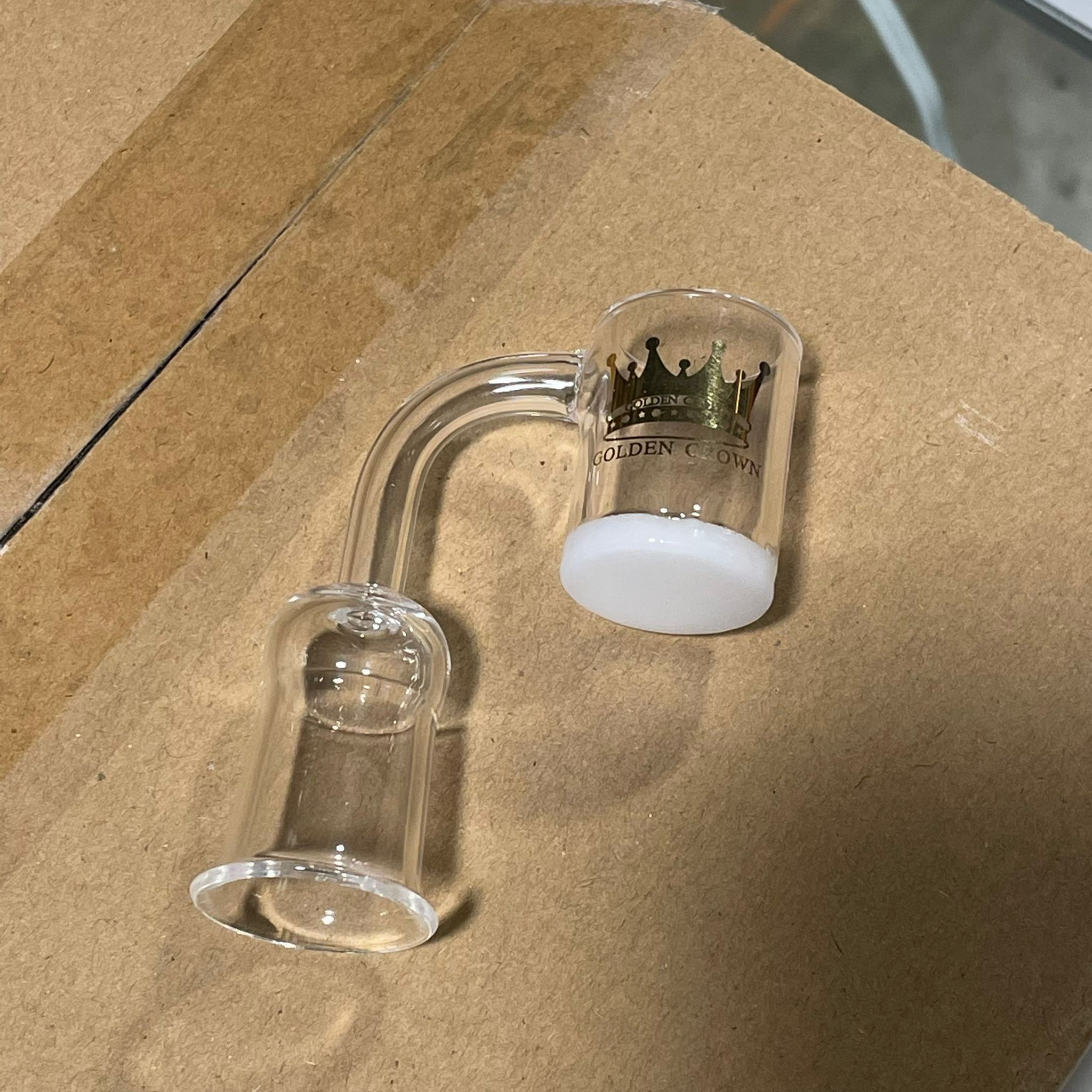 The Golden Crown 18MM Female Banger is a premium-grade accessory designed for use with dab rigs and bongs. Crafted from high-quality quartz, it ensures optimal heat retention and delivers smooth, flavorful hits. Its precision-engineered 18MM female joint guarantees a secure fit, making it the perfect choice for a seamless and enjoyable dabbing experience.