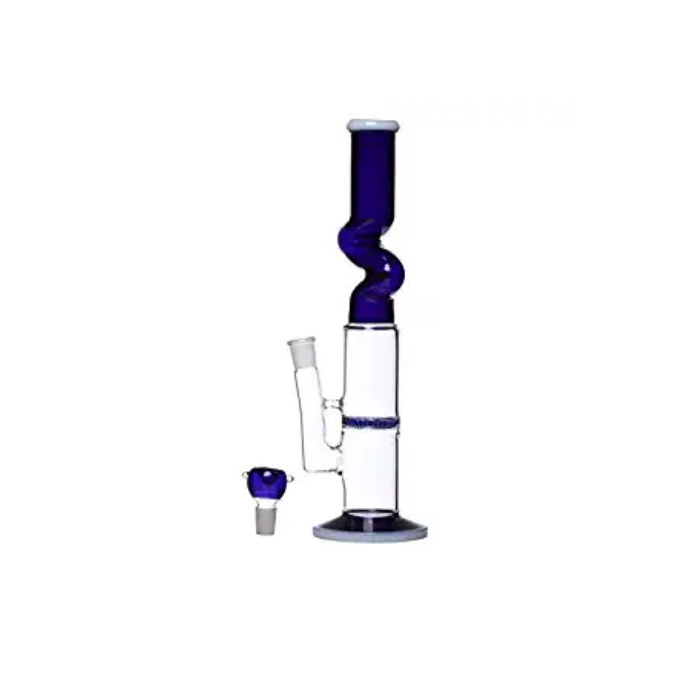 Material: Glass Colour: Blue Product Dimensions Height: 35 cm; Tube Diameter: 3.8 cm; Bottom Diameter: 5 cm Item Weight: 500 Grams; Joint Size: 18.8mm Package Content: 1 Bong With Complete Accessories